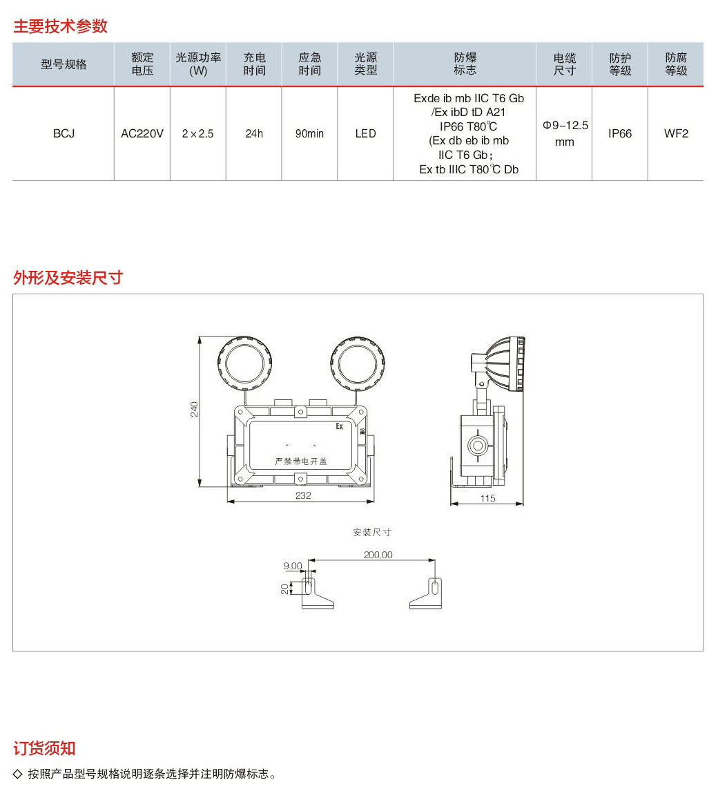BCJ系列防爆消防應(yīng)急雙頭照明燈具