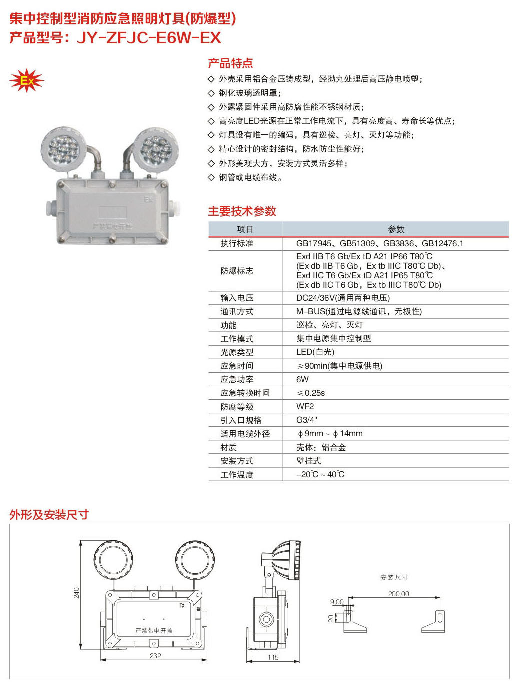 JY-ZFJC-E6W-EX集中電源集中控制型消防應急照明燈具(防爆型)